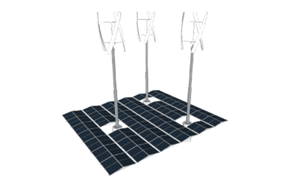 En hybridløsning som kan forsyne energien direkte dit det trengs. Et hybridkraftverk vil ha små, vertikale og bakkemonterte vindturbiner. De er mellom 12-15 meter i høyden, og jobber når det blåser mest: Altså på natten, eller vinteren når solen er borte eller står lavere. Solcellepanelene på taket jobber derimot hardere med å produsere på sommeren – samt gjennom hele dagen.